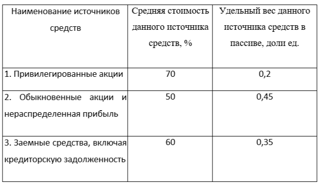 Имеется следующая информация о структуре источников средств предприятия и ценах каждого из них.