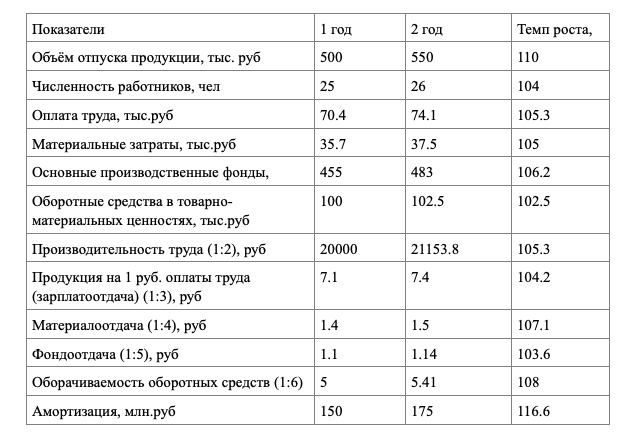«Используя следующие данные, провести анализ экономической ситуации Определить: Влияние на отклонение в объёме продукции экстенсивных и интенсивных факторов использования трудовых ресурсов Долю влияния этих факторов на прирост объёма производства»