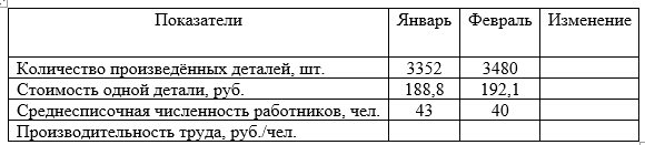 Постройте смешанную модель и рассчитайте производительность труда в стоимостном выражении за каждый месяц. Проведите факторный анализ причин, влияющих на её изменение способом цепных подстановок. Сформулируйте выводы.