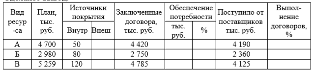 Рассчитайте обеспеченность потребности предприятия материальными ресурсами, договорами и фактическим их выполнением.