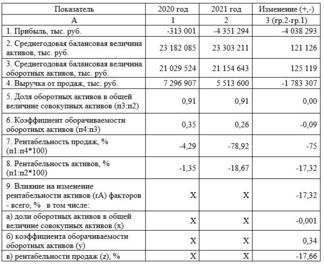 рентабельности продаж; оборачиваемости оборотных активов; доли оборотных активов в общей величине совокупных активов.»