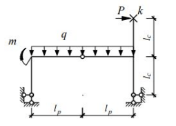 Для приведенной рамы определить горизонтальное, вертикальное перемещение и угол поворота точки k от силового воздействия. Изгибная EI и продольная EA жесткость элементов постоянна. Выполнить анализ полученных перемещений в зависимости от геометрических характеристик.