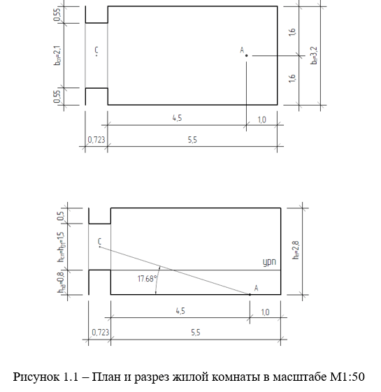 План и разрез жилой комнаты приведен на рис. 1.1.
