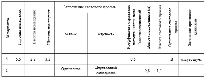 Определить размеры светового проема (окна) жилой комнаты для естественного бокового освещения, в соответствии с вариантом. Сделать выводы.