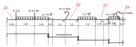 7. Пользуясь построенными линиями влияния, определить значения опорных реакций, Q и M для рассмотренных сечений при действии заданной неподвижной нагрузки.