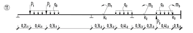 6. Построить линии влияния поперечных сил и изгибающих моментов для сечений, указанных по шифру в табл. 1.