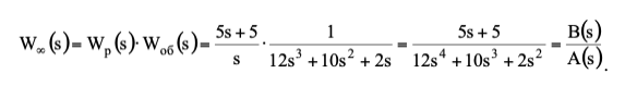 Требуется определить: передаточную функцию разомкнутой системы W∞(s), характеристическое выражение замкнутой системы (ХВЗС), передаточные функции замкнутой системы ФЗ(s) – по заданию, ФВ(s) – по возмущению, ФЕ(s) – по ошибке