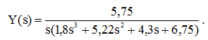 Корни знаменателя включают нулевой корень, действительный и пару комплексных корней: s0 = 0; s1 = - 2,54; s2,3 = - 0,18 j*1,20.