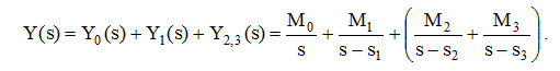 Изображение Y(s) разбивается на сумму четырех дробей: