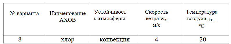 «На химически опасном объекте сосредоточены запасы АХОВ, в том числе хлора – 30 т, аммиака – 50 т, сероводорода – 40 т. Определить глубину зоны заражения в случае разрушения объекта. Время, прошедшее»