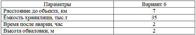 Определить время подхода облака зараженного воздуха к границе объекта, расположенного на определенном расстоянии от хранилища (табл. 4).