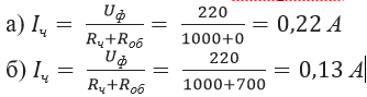 Определите величину силы тока, проходящего через тело человека, при прикосновении человека к однофазной сети переменного тока с напряжением 220 В, если: а) человек босой; б) человек обут в ботинки на кожаной подошве с сопротивлением 0,7 кОм. Сопротивление тела человека принять равным 1 кОм. Поясните алгоритм решения данной задачи.