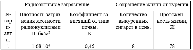 1. Определить потерю жизни от облучения за указанный в задании период жизни: