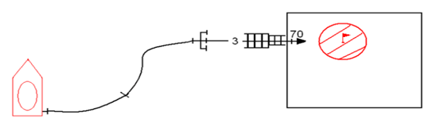 «Рассчитать, какое минимальное давление необходимо создать на насосе автоцистерны, чтобы подать ствол РС-70 в окно 4-го этажа с расходом Q. Рукавная линия проложена из 3-х рукавов диаметром 77 мм и одного разветвления.»