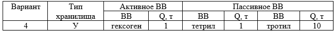 3. Рассчитать безопасные расстояния по передаче детонации от активного заряда к пассивному при хранении ВВ.