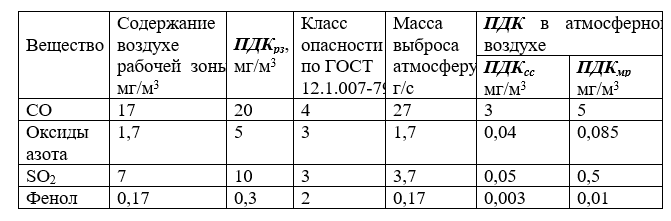 «Соответствует ли нормативным требованиям воздух рабочей зоны, если в нем присутствуют следующие загрязнители, приведенные в таблице»