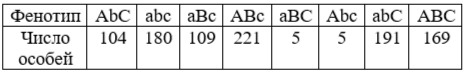 В анализирующем скрещивании получены фенотипические формы в следующих количествах: Определите генотип гетерозиготного родителя, порядок расположения генов в хромосоме и процент кроссинговера.