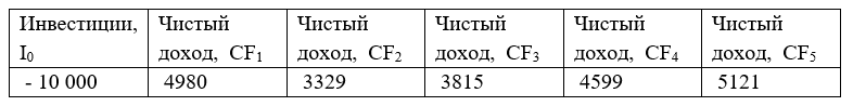 На основании данных таблицы определить показатель внутренней нормы доходности, если дисконтная ставка составляет 20%. Денежные потоки и инвестиционные затраты в тыс. руб. Составить аналитическое заключение по проекту.