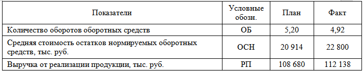 Определите влияние средней стоимости остатков нормируемых оборотных средств и выручки от реализации продукции на количество оборотов (прямой коэффициент оборачиваемости) оборотных средств