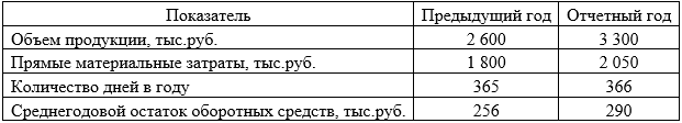 По имеющимся данным рассчитайте влияние изменения среднего остатка оборотных средств и коэффициента оборачиваемости оборотных средств на изменение объема продукции.