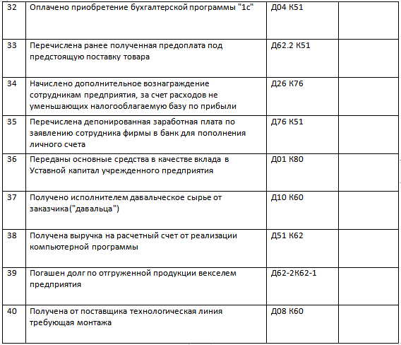 Проверьте правильность и обоснованность корреспонденций бухгалтерского учёта