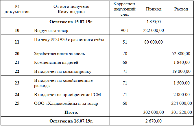 Проверьте соблюдение кассовой дисциплины в ООО «Грация» па основании данных кассового отчета за 15.07.19г.