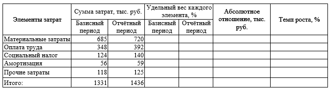 Сравните состав себестоимости выпуска продукции. Определите изменение совокупной себестоимости и влияние изменений состава себестоимости на совокупную себестоимость. Таблица 5 – Исходные данные