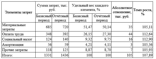 Таблица 6 Анализ себестоимости продукции в разрезе элементов затрат