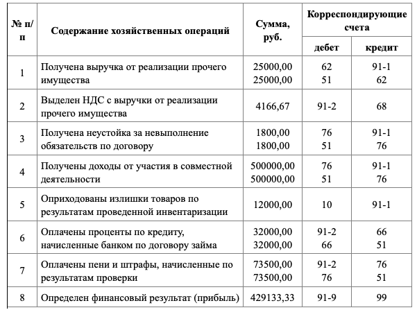 Организация в бухгалтерском учете в отчетном периоде (месяц) отражает следующие доходы и расходы: