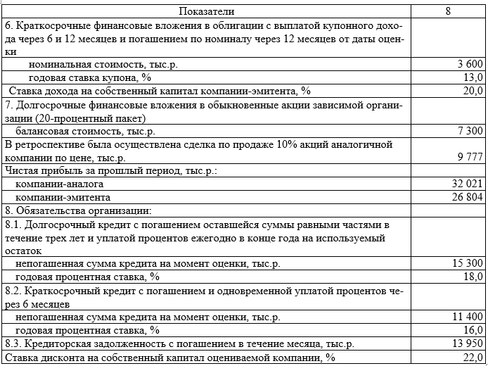 «Оцените стоимость действующего бизнеса по следующим данным:»