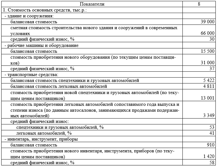 - здание и сооружения оцениваются по сметной стоимости строительства нового здания и сооружений в современных условиях с учетом износа