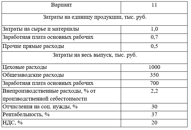 «Определите оптовую цену предприятия, использую следующие данные. Для составления калькуляции определим процент цеховых и общезаводских расходов.»
