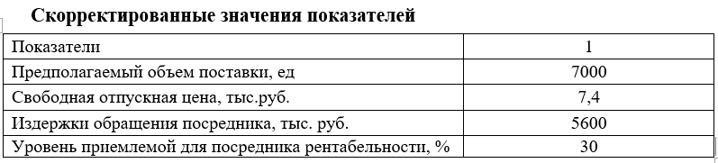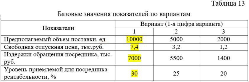 Торговый посредник рассматривает предложение о поставке партии изделий по свободной отпускной цене за единицу. Для этого предложения предполагаются издержки обращения посредника, а также приемлемая для него рентабельность к издержкам обращения.