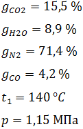 По известному массовому составу продуктов сгорания и их параметрам – давлению и температуре