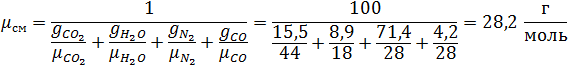 «По известному массовому составу продуктов сгорания и их параметрам – давлению и температуре определите: среднюю молекулярную массу и газовую постоянную смеси.»