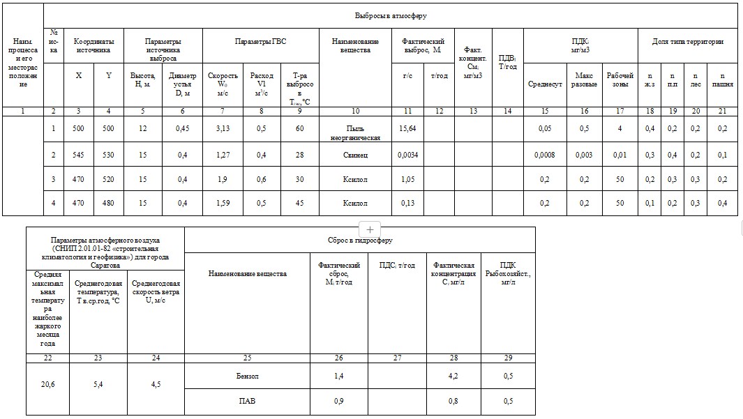 2. Рассчитать коэффициент соответствия техпроцесса экологическим требованиям по отношению к атмосфере