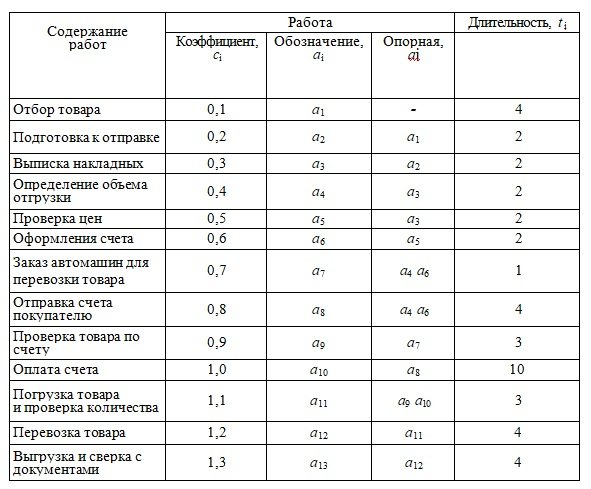 1. Для задачи планирования поставки товаров оптовым покупателям построить сетевой график, привязанный к оси времени, согласно структурно - временной таблицы.