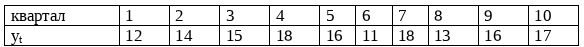 Имеется следующий временной ряд:/С помощью критерия Дарбина-Уотсона проверить гипотезу о наличии автокорреляции остатков. Оценим параметры a и b модели, решив систему нормальных уравнений МНК, которая для рассматриваемого случая имеет вид: