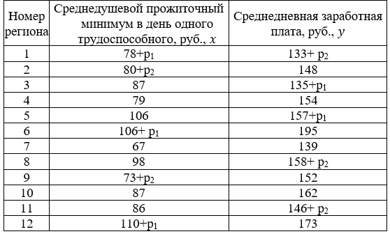 По территориям региона приводятся данные за 199Xг. (р1 - число букв в полном имени, р2 - число букв в фамилии) Требуется: 1. Построить линейное уравнение парной регрессии у по х.