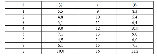 Имеются условные данные об объемах потребления электроэнергии (yt) жителями региона за 16 кварталов.