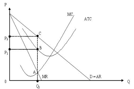 1) Монополист максимизирует прибыль при равенстве предельного дохода (MR) и предельных издержек (MC): MR = MC (точка равенства обозначена буквой А).
