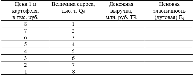 Рассчитайте денежную выручку TR и ценовую эластичность Ed и внесите полученные результаты в таблицу.