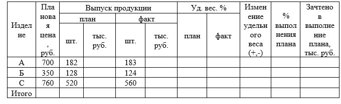 Оценка выполнения плана по ассортименту основывается на сопоставлении планового и фактического выпуска по основным видам продукции, включенным в номенклатуру.