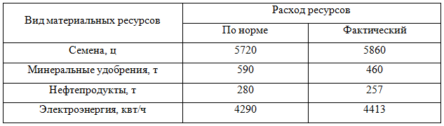 Сравним фактический расход ресурсов с расходом, предусмотренным по нормам.