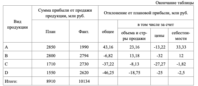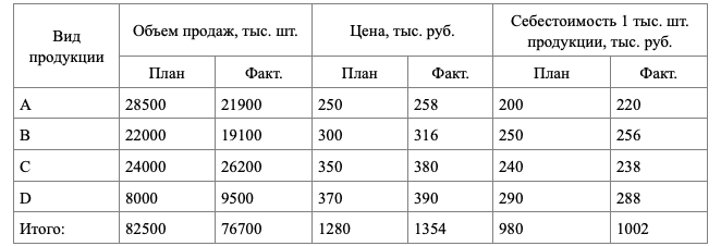 Методом цепной подстановки сделать анализ прибыли от продажи отдельных видов продукции. Сформулировать выводы. Данные в таблице.
