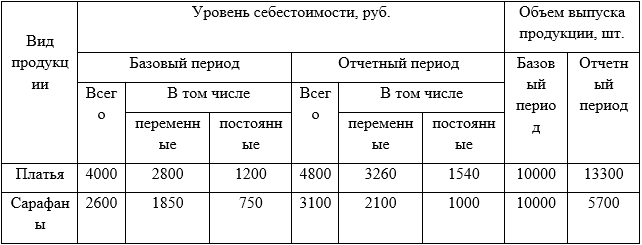 На предприятии затраты на производство единицы продукции характеризуются следующими данными, представленными в таблице: