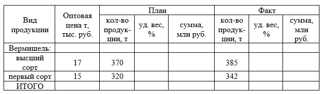 - Определить удельный вес продукции разных сортов в общем выпуске продукции.