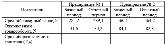 Составить и решить факторную модель зависимости срока оборачиваемости капитала от среднего товарного запаса и однодневного товарооборота и решить ее способом цепной подстановки. Сделать выводы.