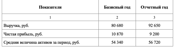 На основании исходных данных таблицы определить величину влияния на рентабельность активов рентабельности продаж и оборачиваемости активов методом относительных разниц на основе модели: