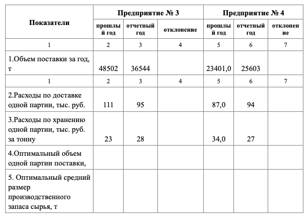 Задание Проанализируйте оптимальность управления запасами на двух предприятиях объединения: Определите: отсутствующие в таблице показатели;влияние изменения объема поставок за год, расходов на хранение, расходов на доставку на изменение размера